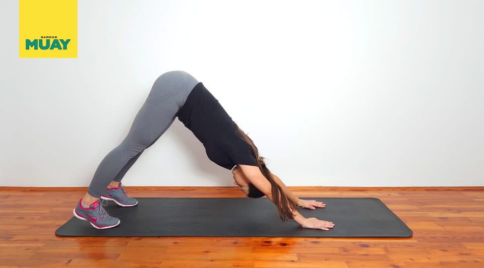 A lefelé néző kutya nyújtás egy alapvető mozdulat. Elősegíti az egyensúlyt, az erőt és a rugalmasságot az egész testben.